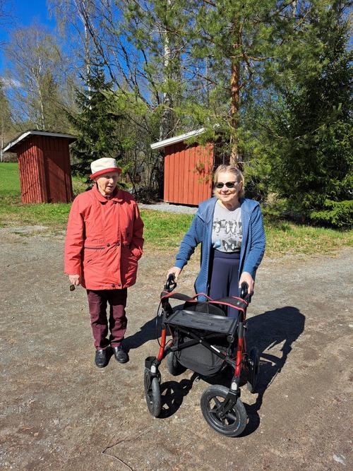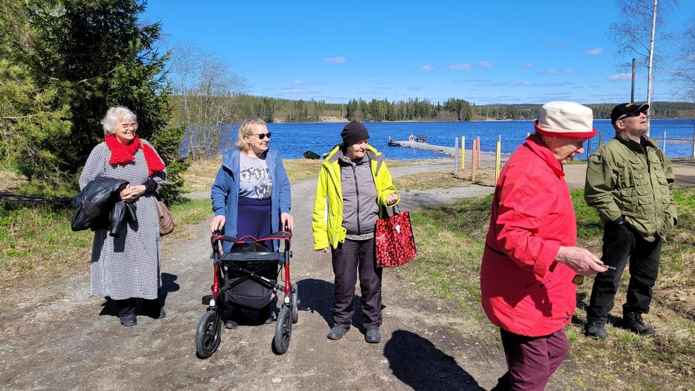 Yläpuolella Ritva Turunen viihdyttämässä eläkkeensaajia runoilla ja tarinoilla.